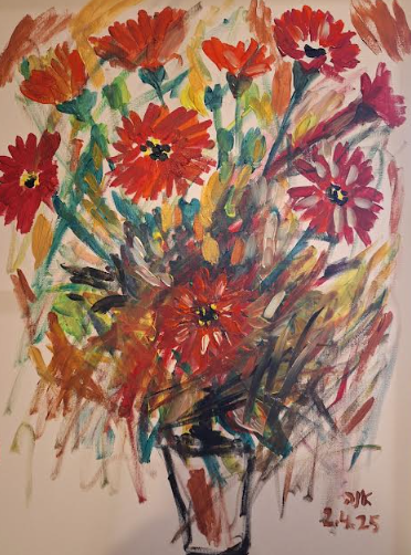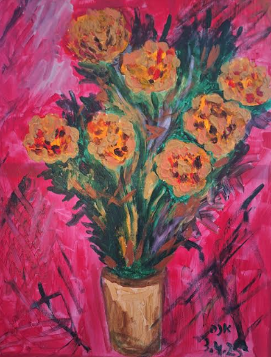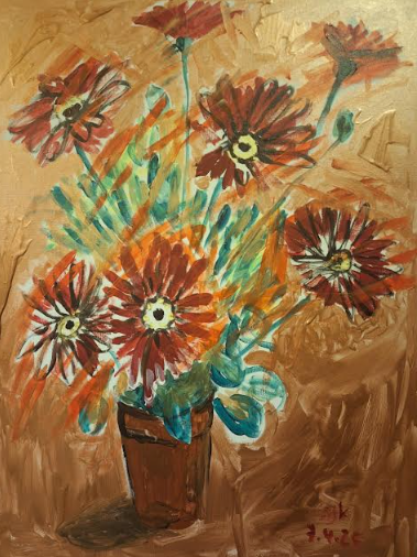 בעיקר פריחה וטבע. ציורי הפרחים שלה מבטאים חיות,