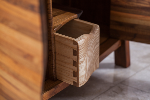 A major source of inspiration for him is Japanese woodworking, a Zen like craft characterized by precision and deep respect for material and process. Many of the tools he uses are Japanese tools, designed and functioning differently from Western tools, inviting a slower, more attentive and exact way of working.
