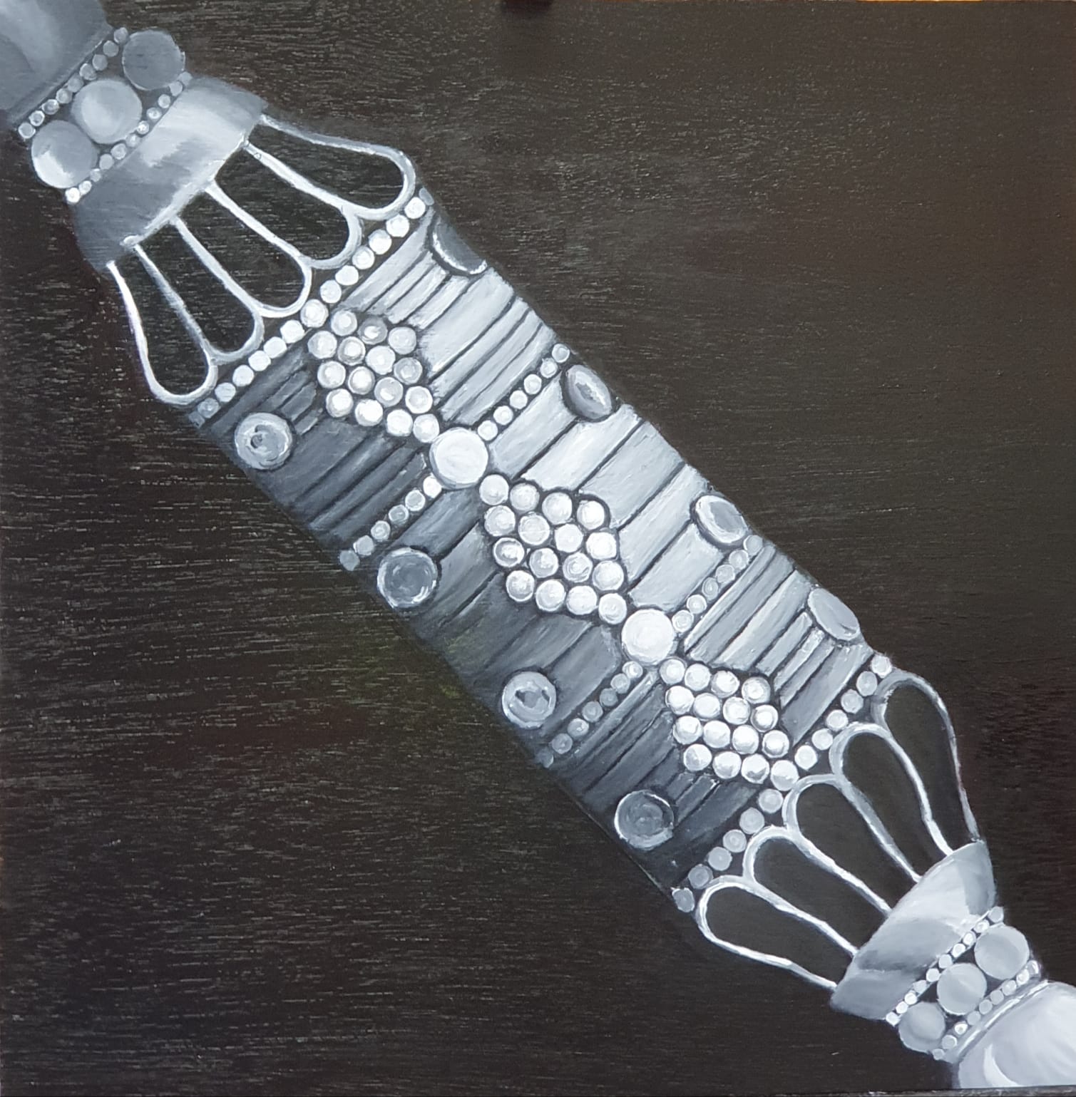 - בחירת ציור הדימויים על עץ משום שהסוגר של הצמיד של אימה עשוי מעץ. הרקע שבחרה לציורים הוא אדום ושחור (צבעים הבולטים ברקמה התימנית של בתי הרגליים במכנסיים שנשות תימן לבשו בצנעא). יש קרבה גדולה במוטיבים בין הצורפות (נחשבה לעיסוק גברי) לרקמה (עיסוק נשי).
