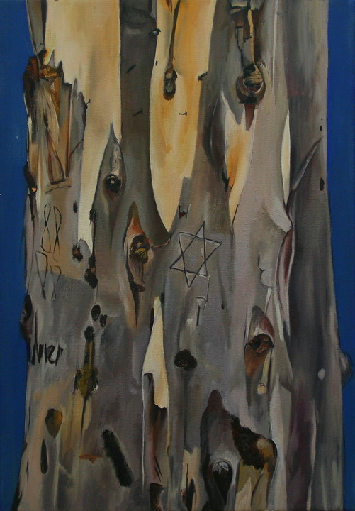 - עצים: סדרה של גזעי אקליפטוס. עדינה הדגישה את ה”עיניים” של העץ ואת החריטות על הגזע.